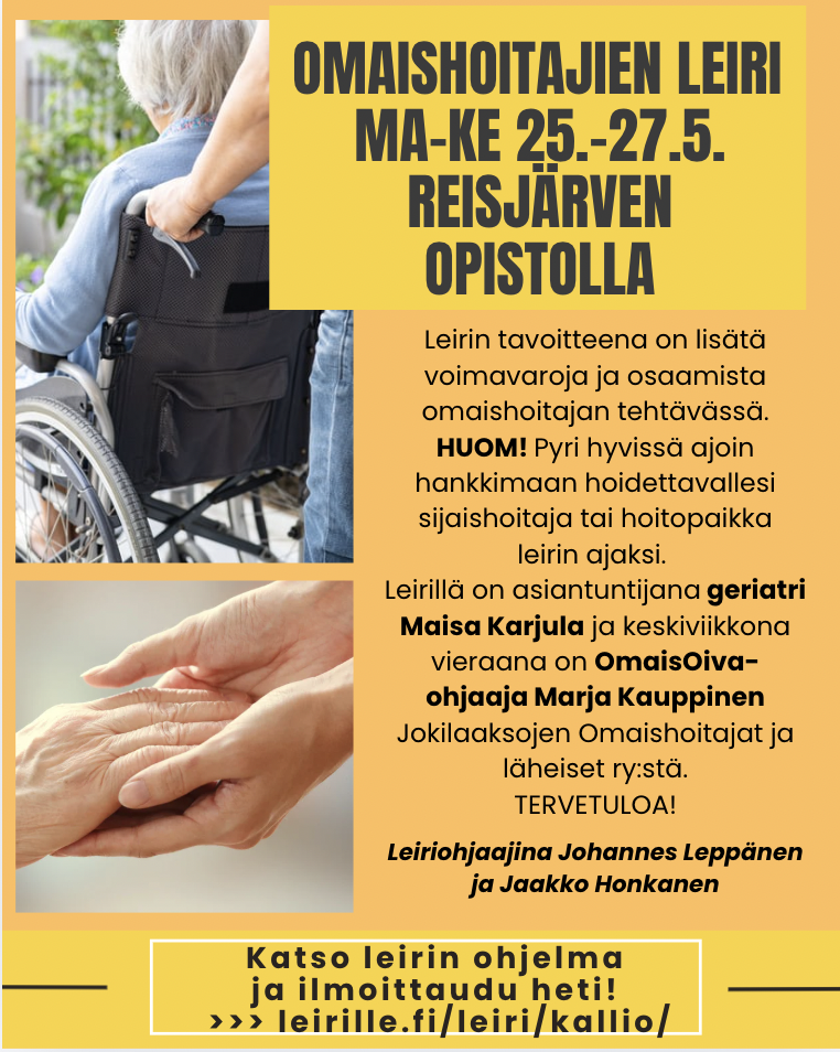 Omaishoitajien virkistyspäivät 25.–27.5.2026 Reisjärven opistolla