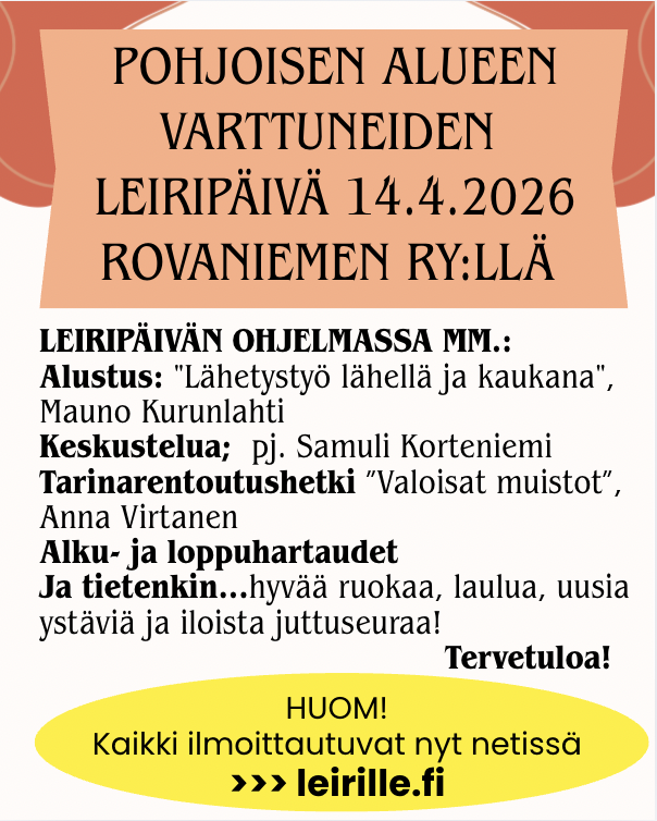 Pohjoisen alueen VARTTUNEIDEN LEIRIPÄIVÄ 14.4.2026 Rovaniemen rauhanyhdistyksellä
